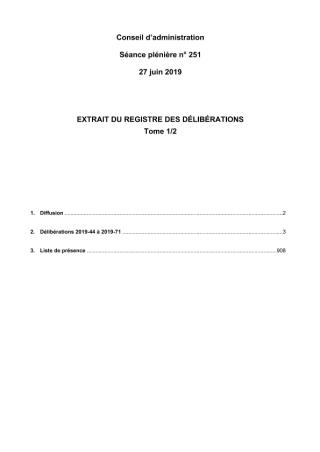 Délibérations du conseil d'administration du 27 juin 2019 - Tome 1/2