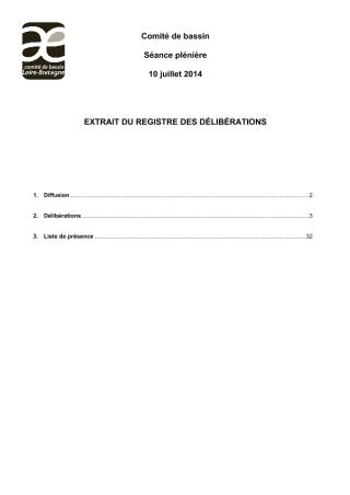 Délibération du comité de bassin du 10 juillet 2014